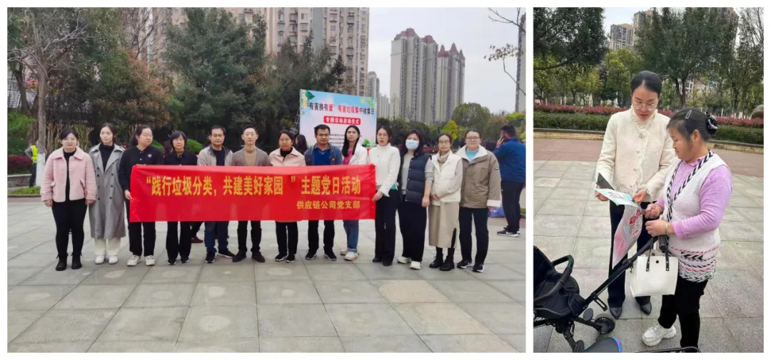 供應鏈公司支部黨員志愿者深入信豐路社區開展“踐行垃圾分類 共建美好家園”主題黨日活動。活動中,黨員志愿者們向來往的居民發放生活垃圾宣傳冊,細心講解生活垃圾的概念、分類標準以及垃圾分類實效,并耐心解答居民提出的日常垃圾分類難題,進一步普及了垃圾分類知識,傳播了垃圾分類理念,引導居民養成垃圾分類的良好習慣。