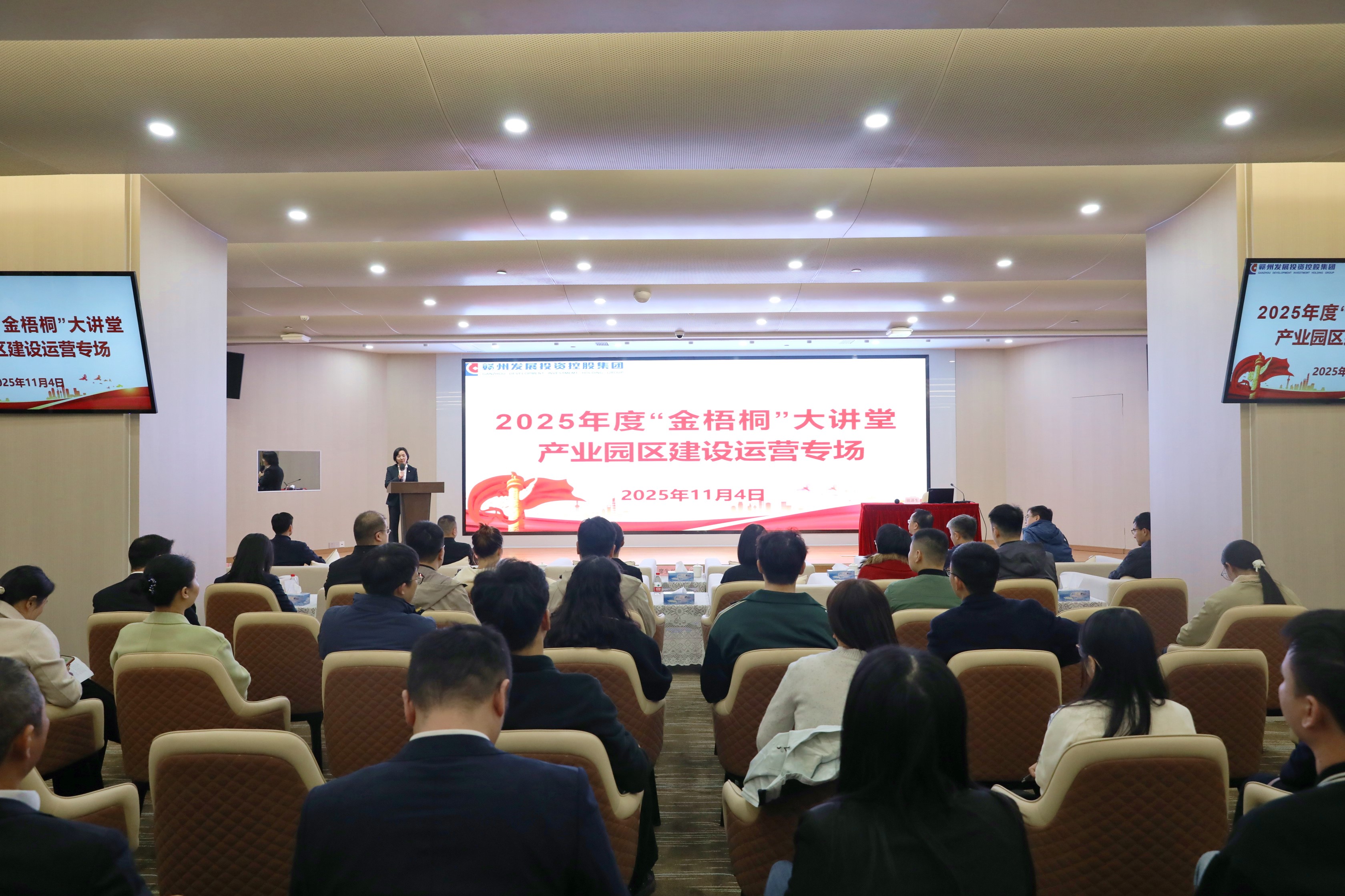 為了解產(chǎn)業(yè)發(fā)展趨勢,助力集團(tuán)相關(guān)業(yè)務(wù)板塊系統(tǒng)構(gòu)建招商策略、產(chǎn)業(yè)規(guī)劃、運(yùn)營管理等多維度全鏈條的知識體系,加速打造懂產(chǎn)業(yè)、精招商、善服務(wù)的專業(yè)化隊(duì)伍,11月4日,集團(tuán)在二樓多功能廳舉辦2025年度“金梧桐”大講堂——產(chǎn)業(yè)園區(qū)建設(shè)運(yùn)營專場活動。集團(tuán)黨委委員、市紀(jì)委監(jiān)委駐集團(tuán)紀(jì)檢監(jiān)察組組長曾紹海,集團(tuán)黨委委員、財(cái)務(wù)總監(jiān)彭慧斌出席,集團(tuán)各部門、各子公司代表共計(jì)70余人參加。