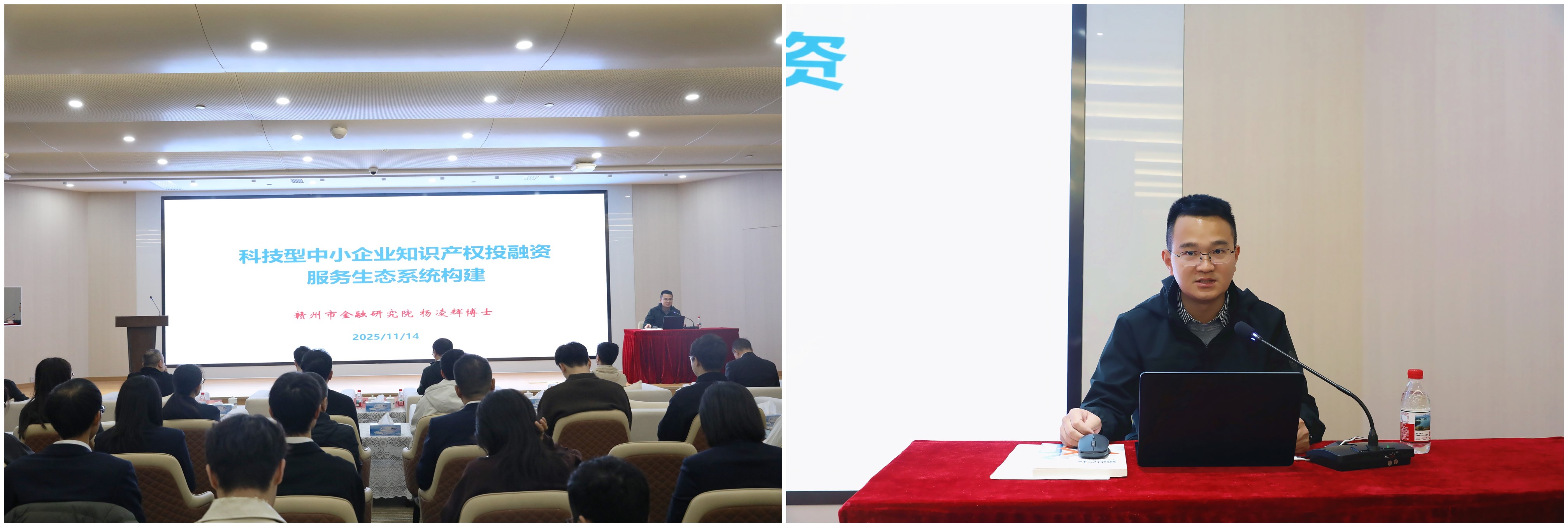 本次大講堂邀請了贛州市金融研究院副院長、江西理工大學經濟管理學院博士楊凌輝進行專題授課。他以“科技型中小企業知識產權投融資服務生態系統構建”為題,系統剖析了我國知識產權投融資現狀及贛州市實踐痛點,結合省內外典型案例,提煉出具有借鑒意義的實施經驗,并提出從前端準入、融資模式設計到貸后管理與資產處置的全流程實施路徑。同時,他錨定“十五五”時期的發展目標,提出了“基礎—躍升—引領”三階推進思路,為破解科技型中小企業融資難題、構建良性服務生態提供了兼具現實針對性與戰略前瞻性的有益參考。