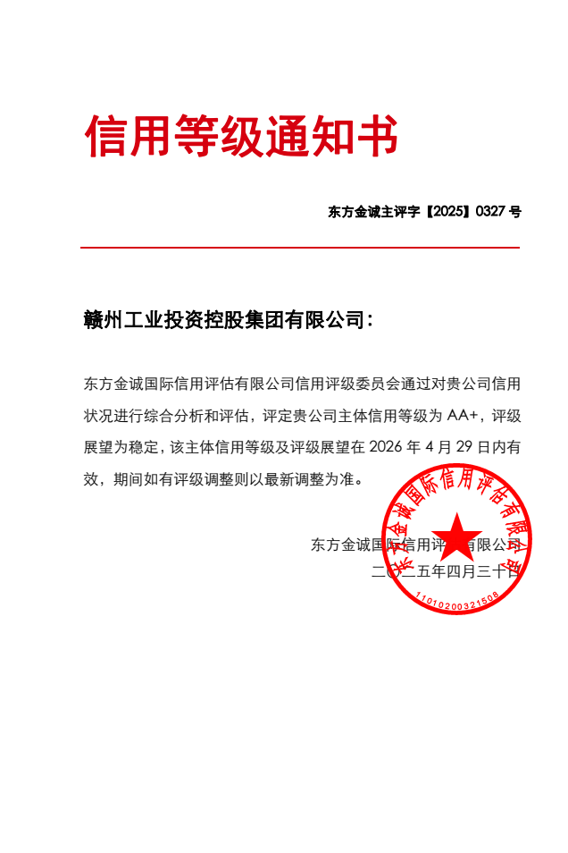 全省首家!贛州產投集團獲評中誠信AAA 實現主體信用評級“雙AAA”