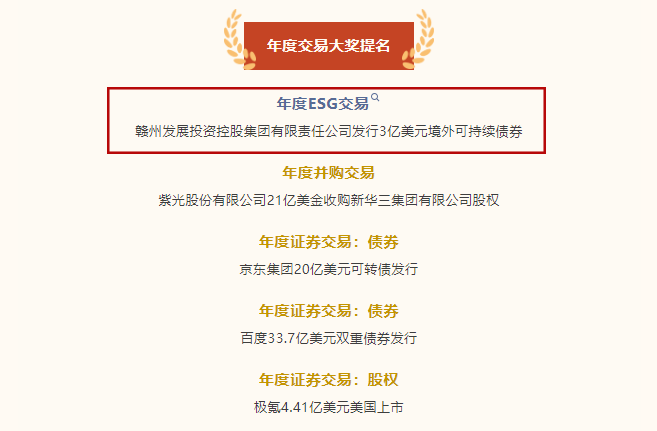 贛州發展集團3億美元可持續發展境外債券獲國際獎項提名